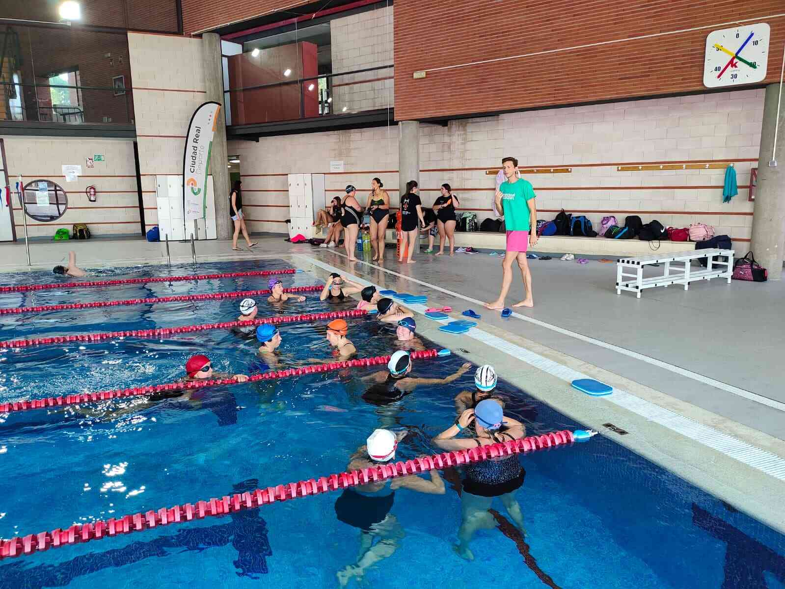 La piscina cubierta del polideportivo Puerta de Santa María ha acogido este sábado una nueva actividad incluida en la programación de la Semana Europea del Deporte, en este caso de la mano del Club de Salvamento y Socorrismo Rhinos de la capital. La iniciativa consiste en 12 horas ininterrumpidas de natación, desde las 9 de la mañana hasta las 9 de la noche, y para inscribirse tan sólo hacía falta aportar un kilo de alimentos, ya que evento también tiene un carácter solidario y por ello todo lo recaudado se ha destinado al Banco de Alimentos de Ciudad Real.